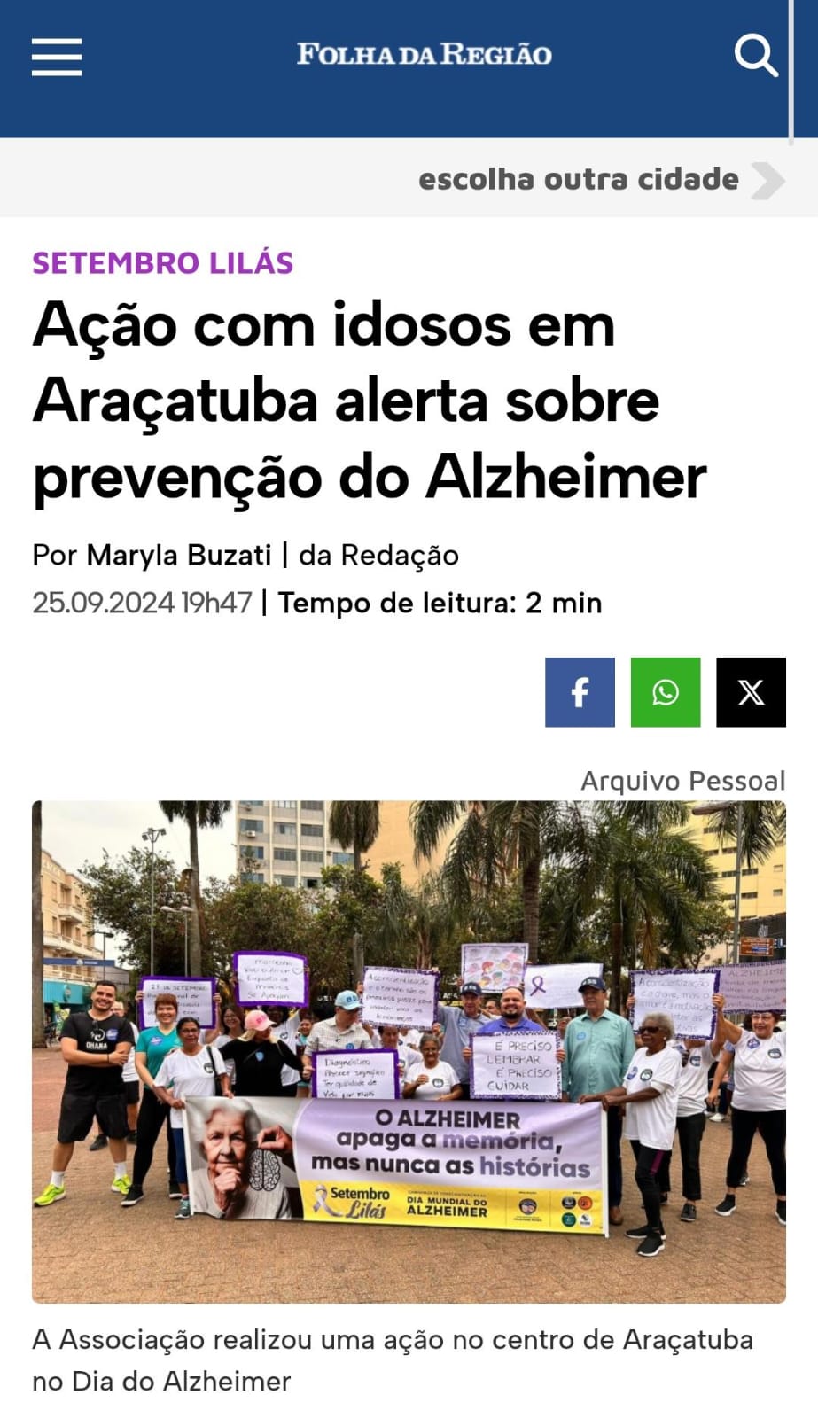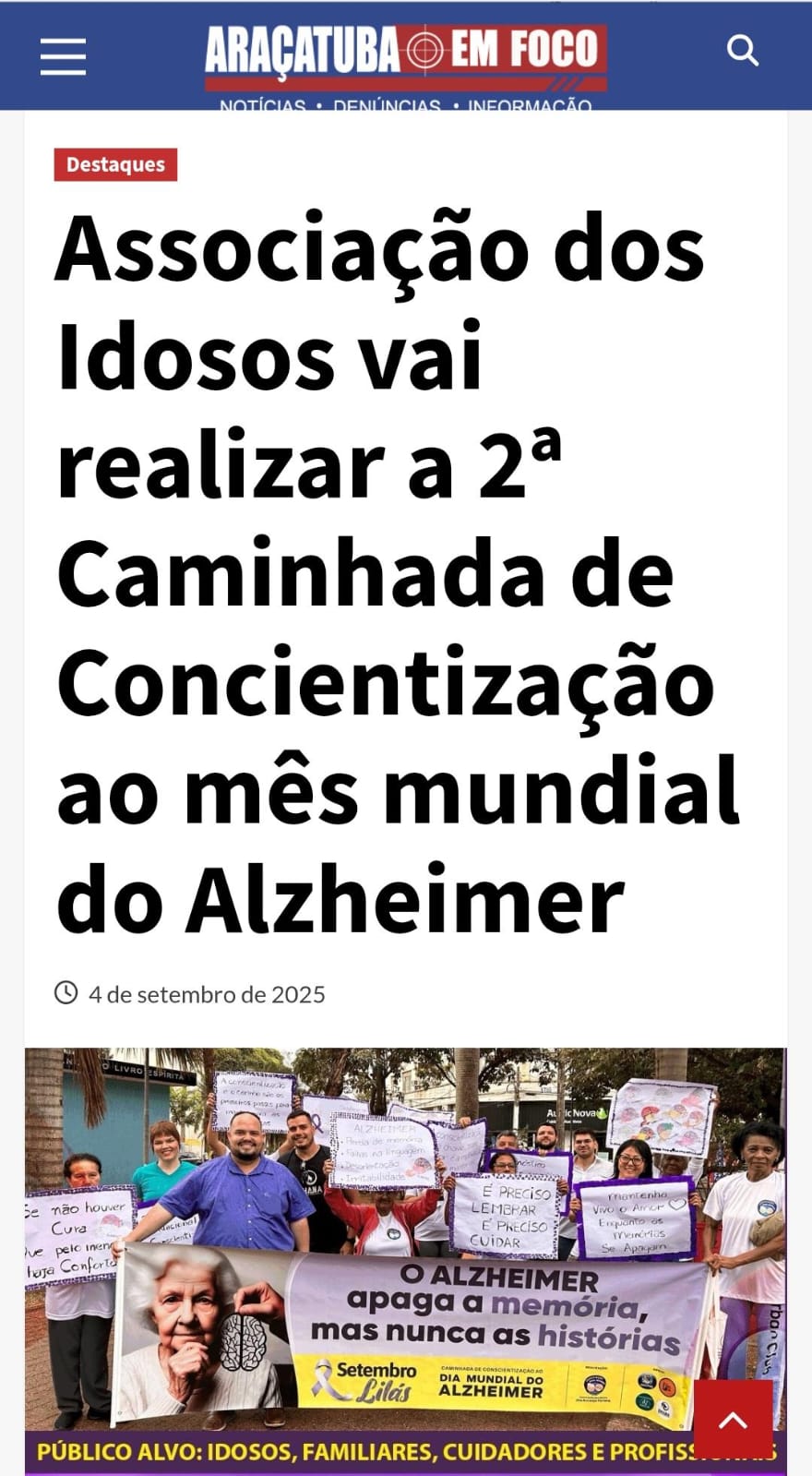 Campanha de concientização do Alzheimer em Araçatuba