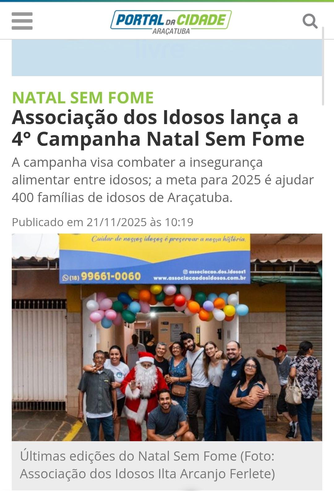 3 ° Edição da Campanha Natal Sem fome da Associação dos Idosos
